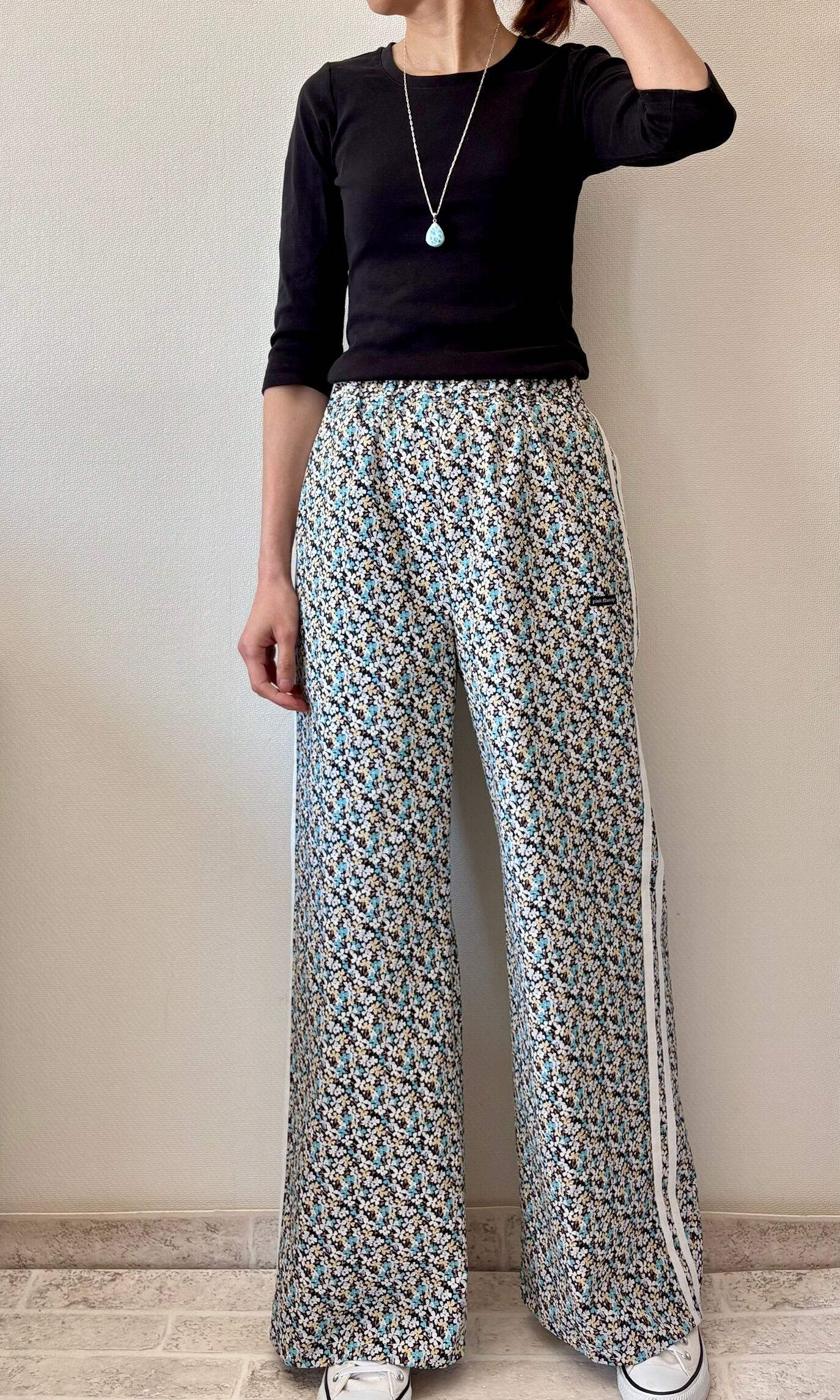 リバティプリントでは珍しい薄手のシーチングを使って、イージーパンツを作りました♪