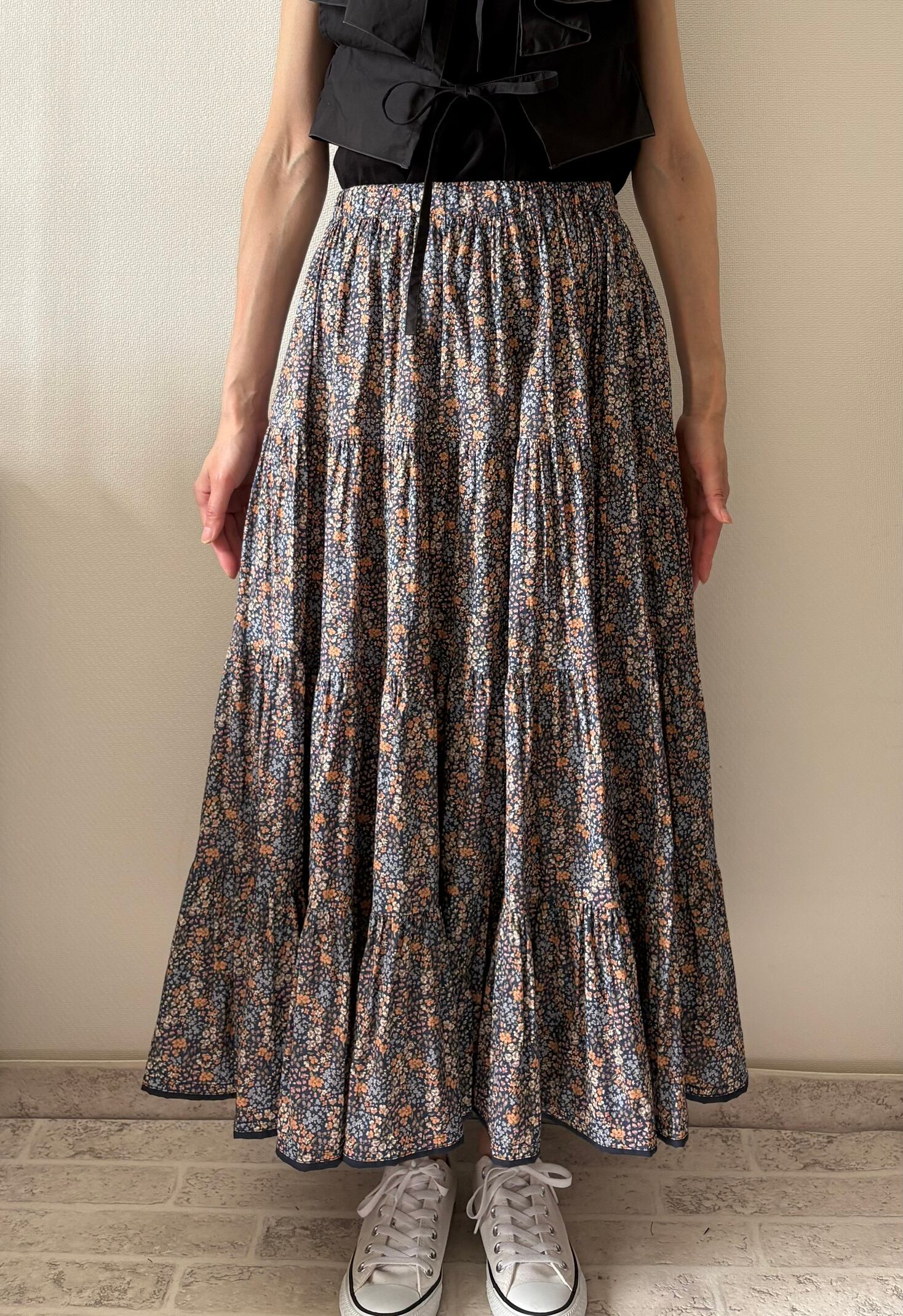 とても小さな花たちが全面に散りばめられた4段ティアードスカートを作りました☆