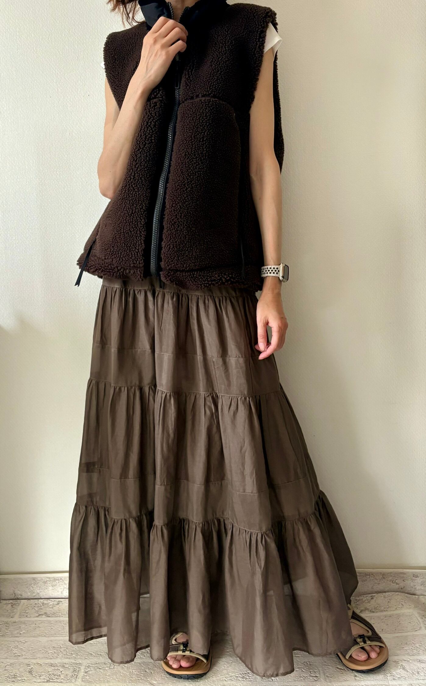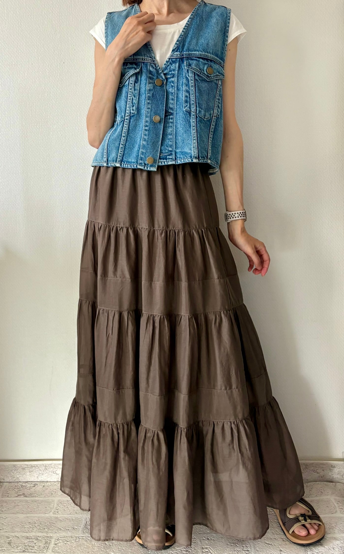 とてもシンプルだけど大人風に着こなせるティアードスカート。