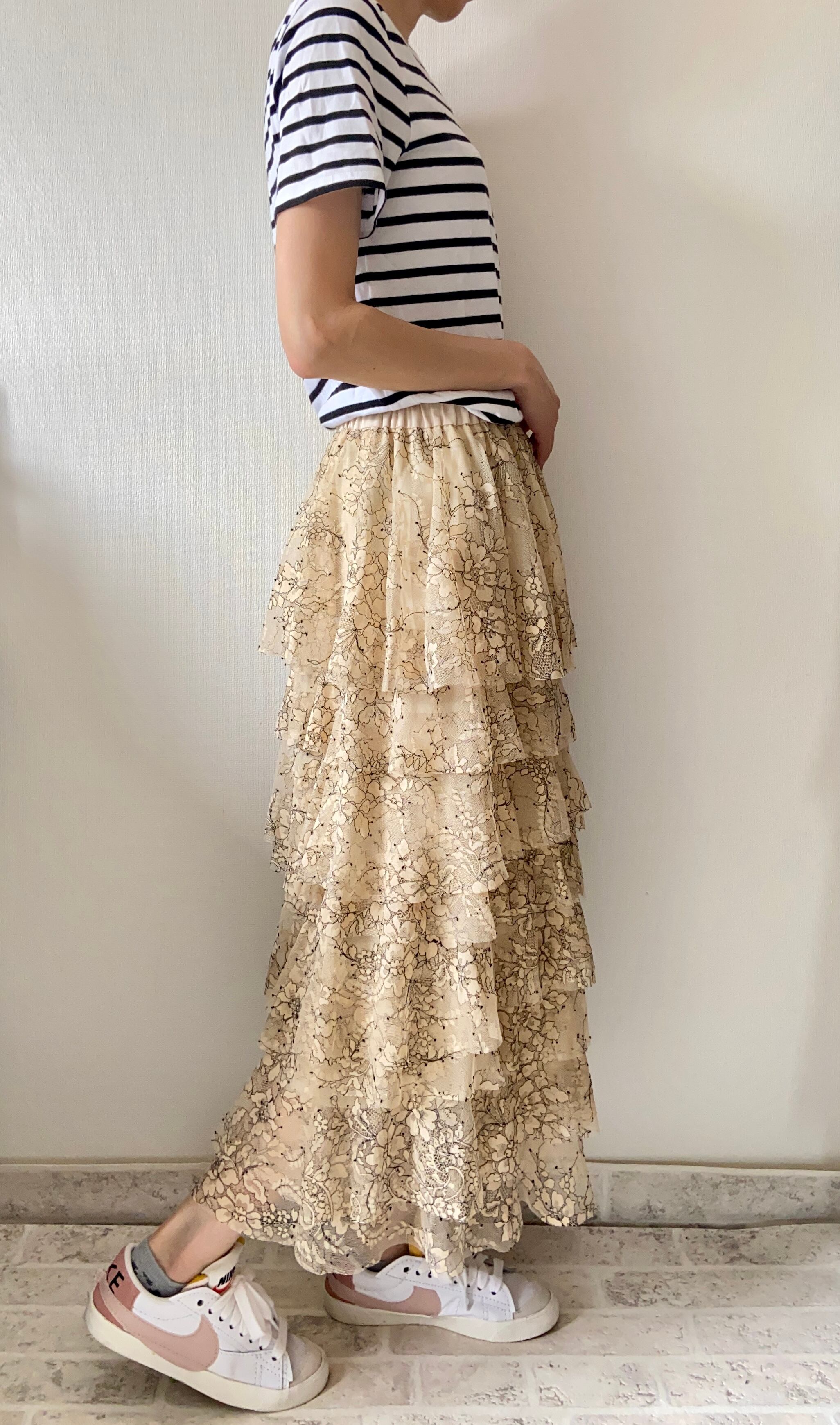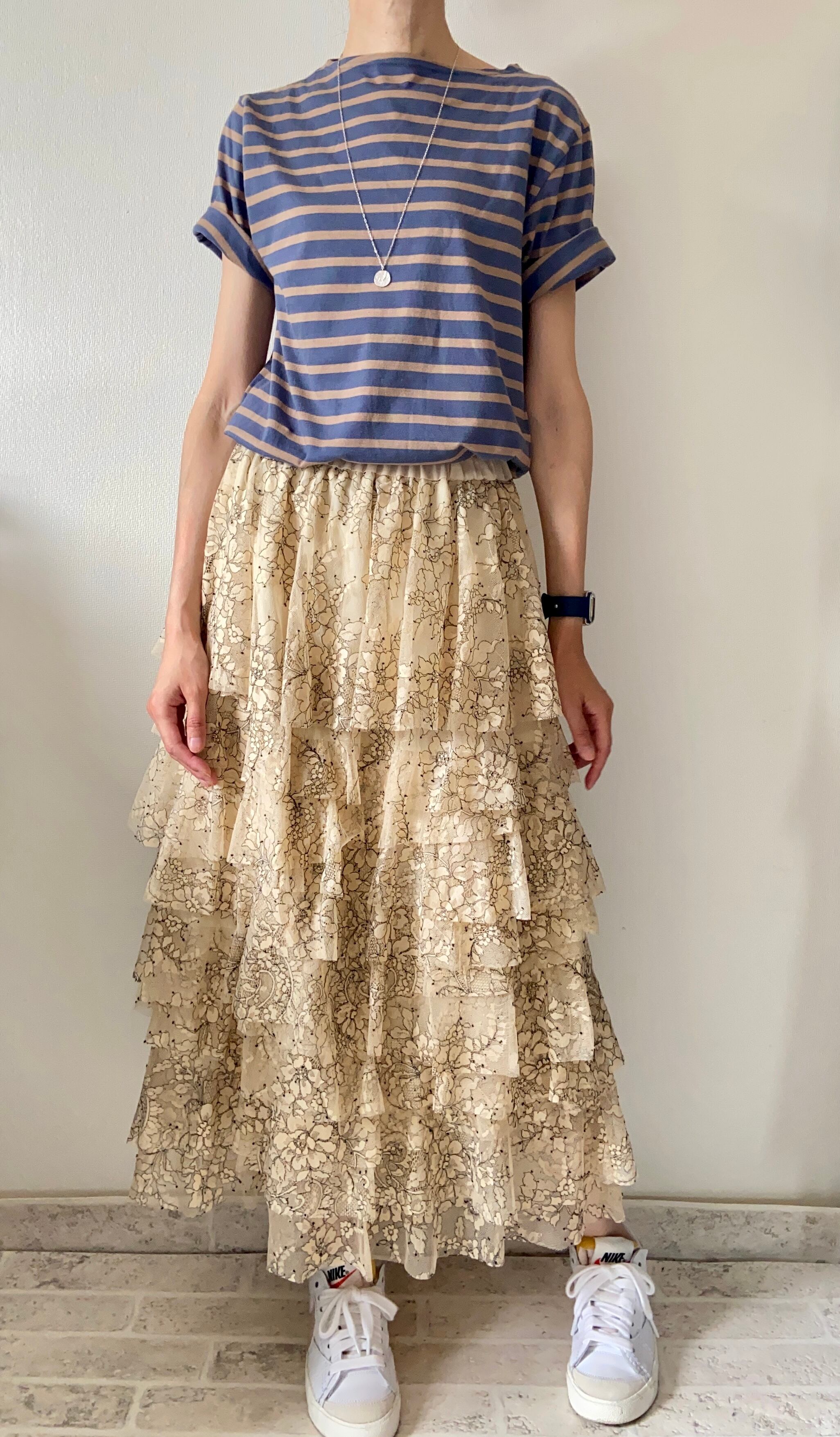 夏場は裏地がまとわりついたりしてなかなかレーススカートは穿けませんが