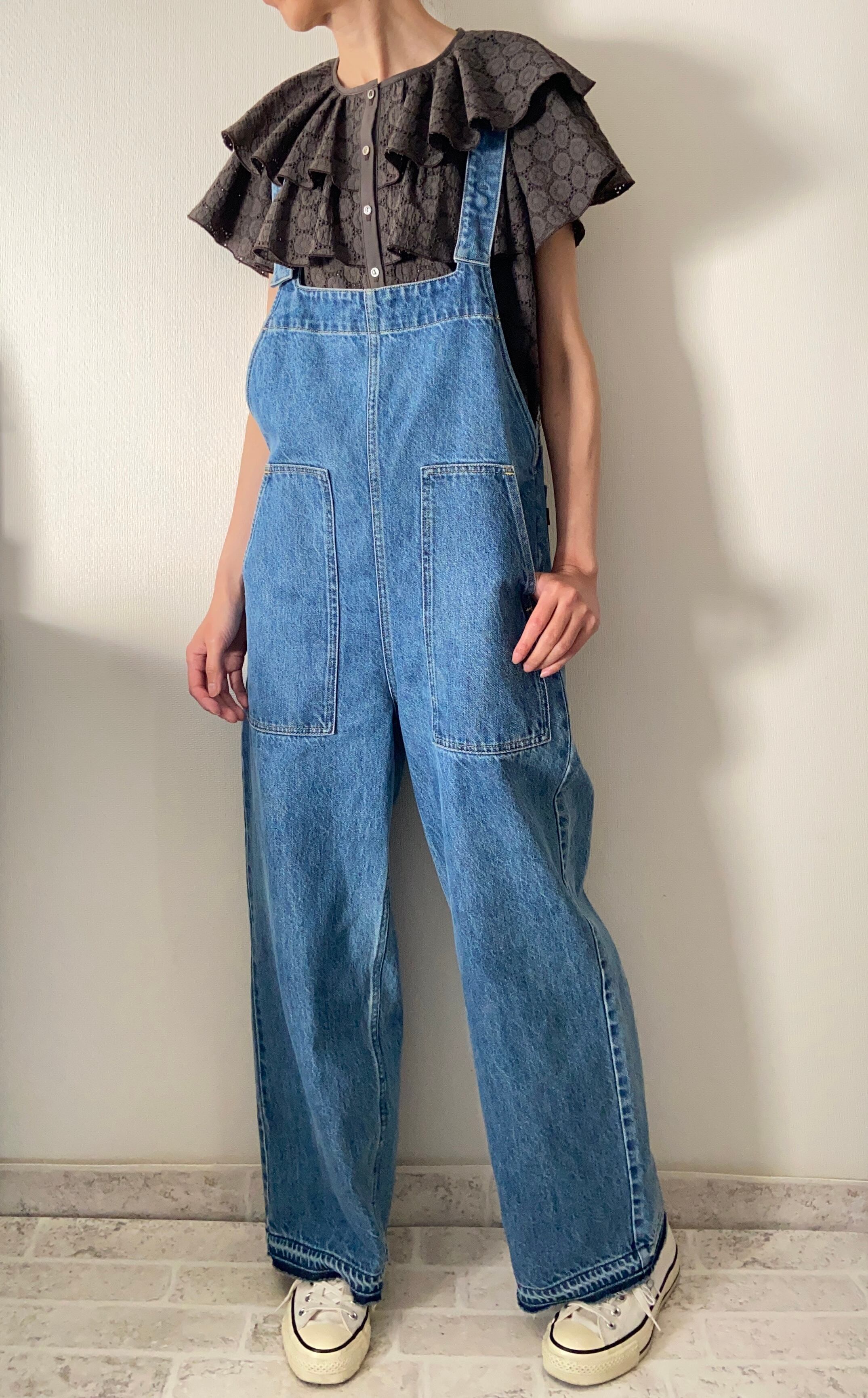 更に衿回りと胸元にフリルをあしらい、特にオーバーオールやジャンパースカートと言った