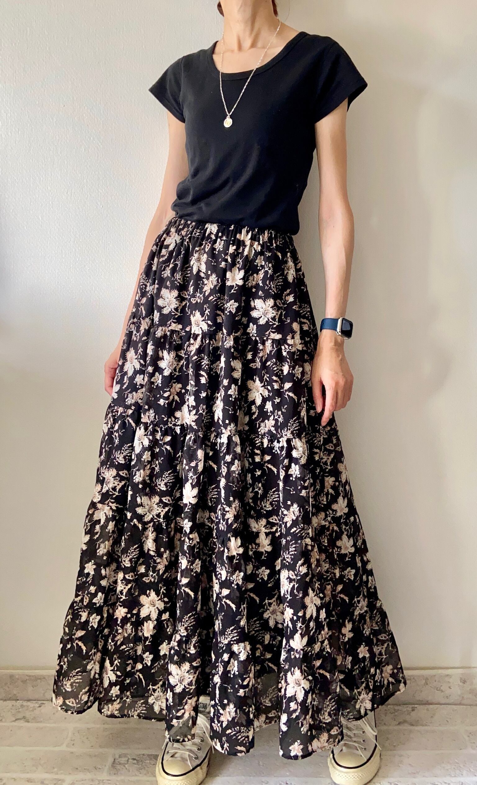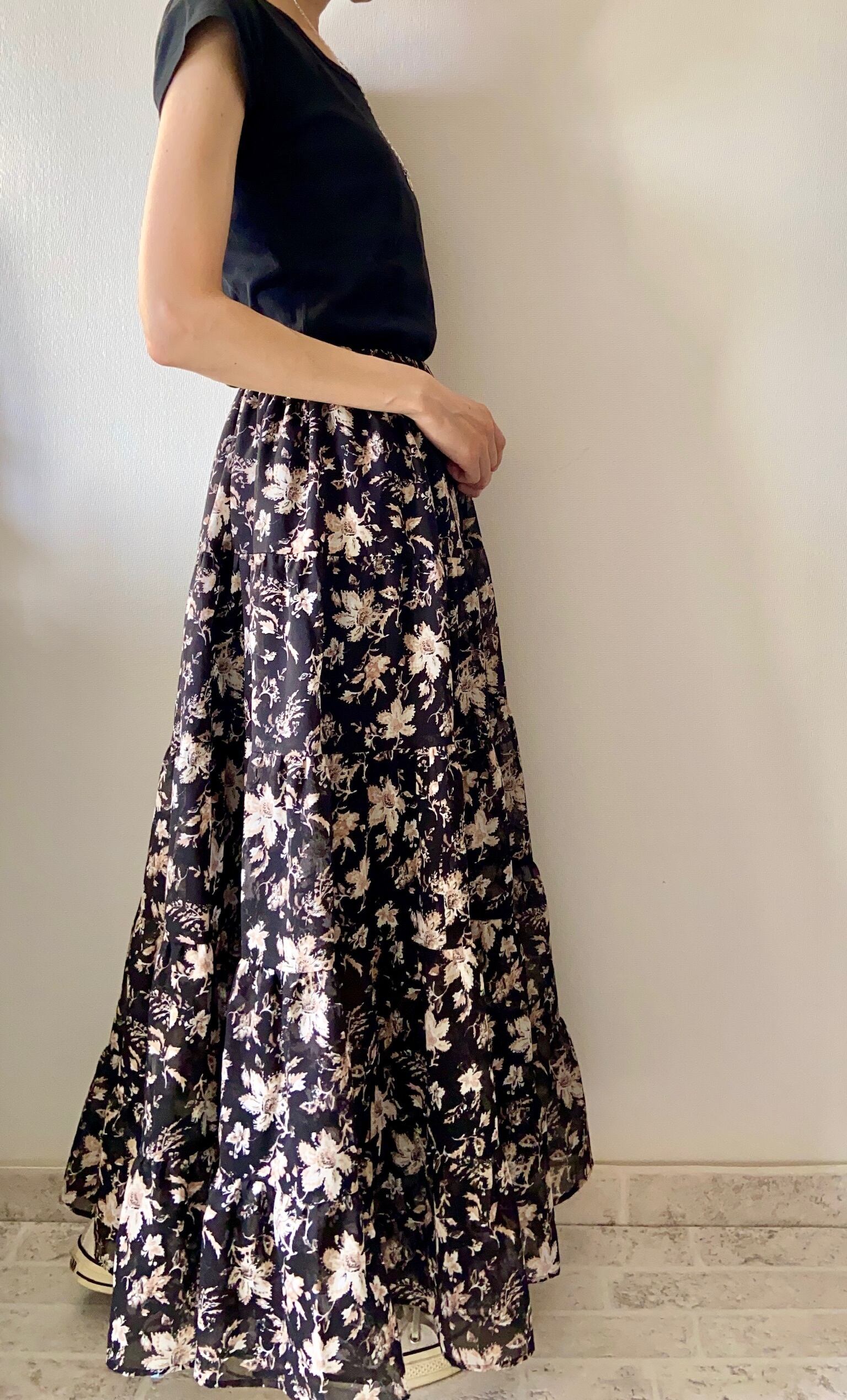昨年も好評頂きました5段ティアードスカートが今年は色を替えブラックで再登場です。