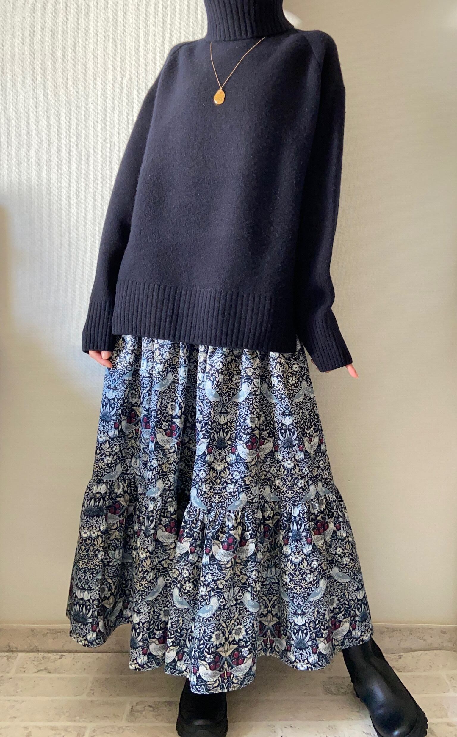 ウィリアムモリス 3ティアードスカート ネイビー レギュラーサイズ