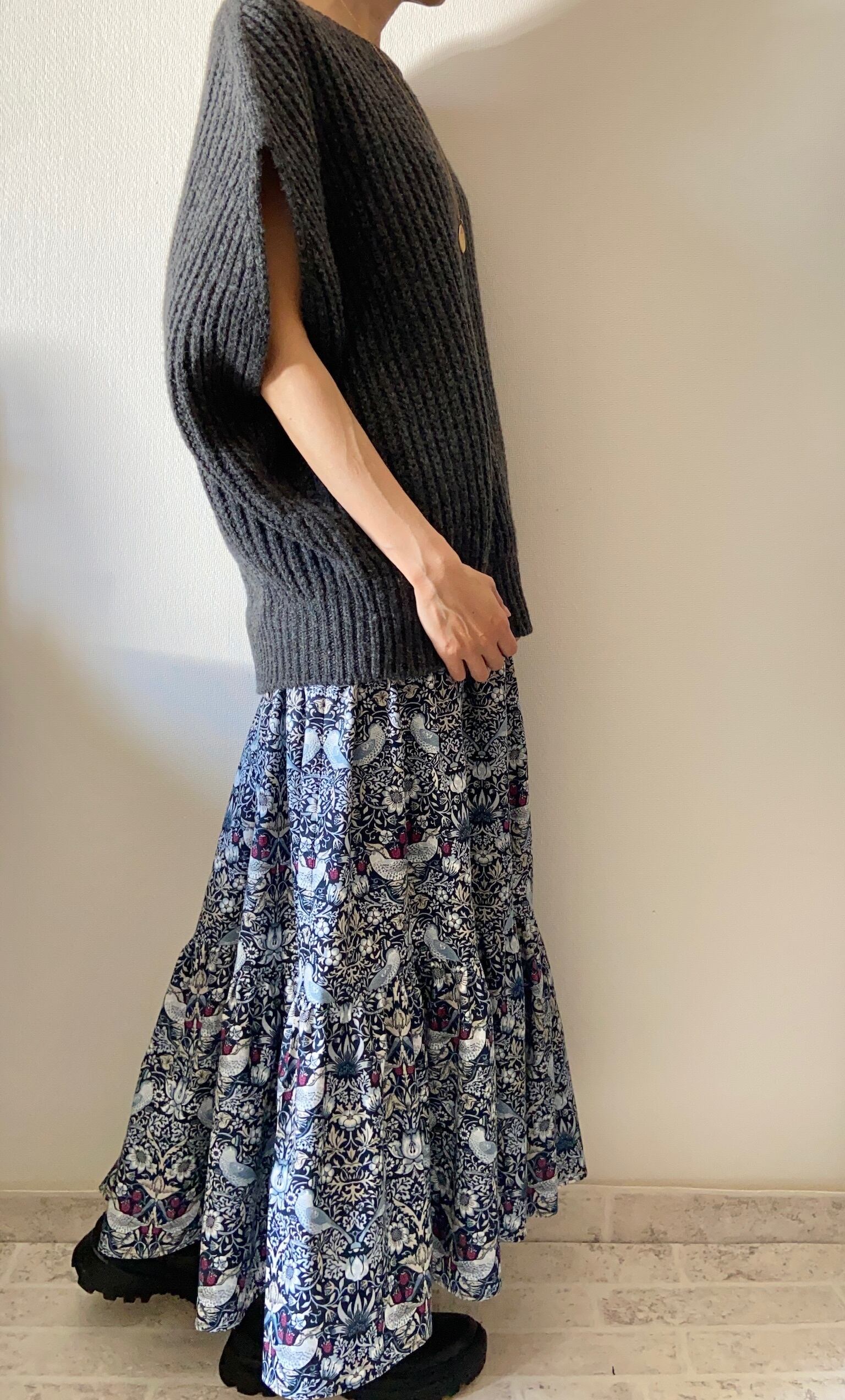 秋の立ち上がり第一号は、ウィリアムモリスのストロベリーシーフ柄を使用しレギュラーサイズの3ティアードスカートを製作しました☆
