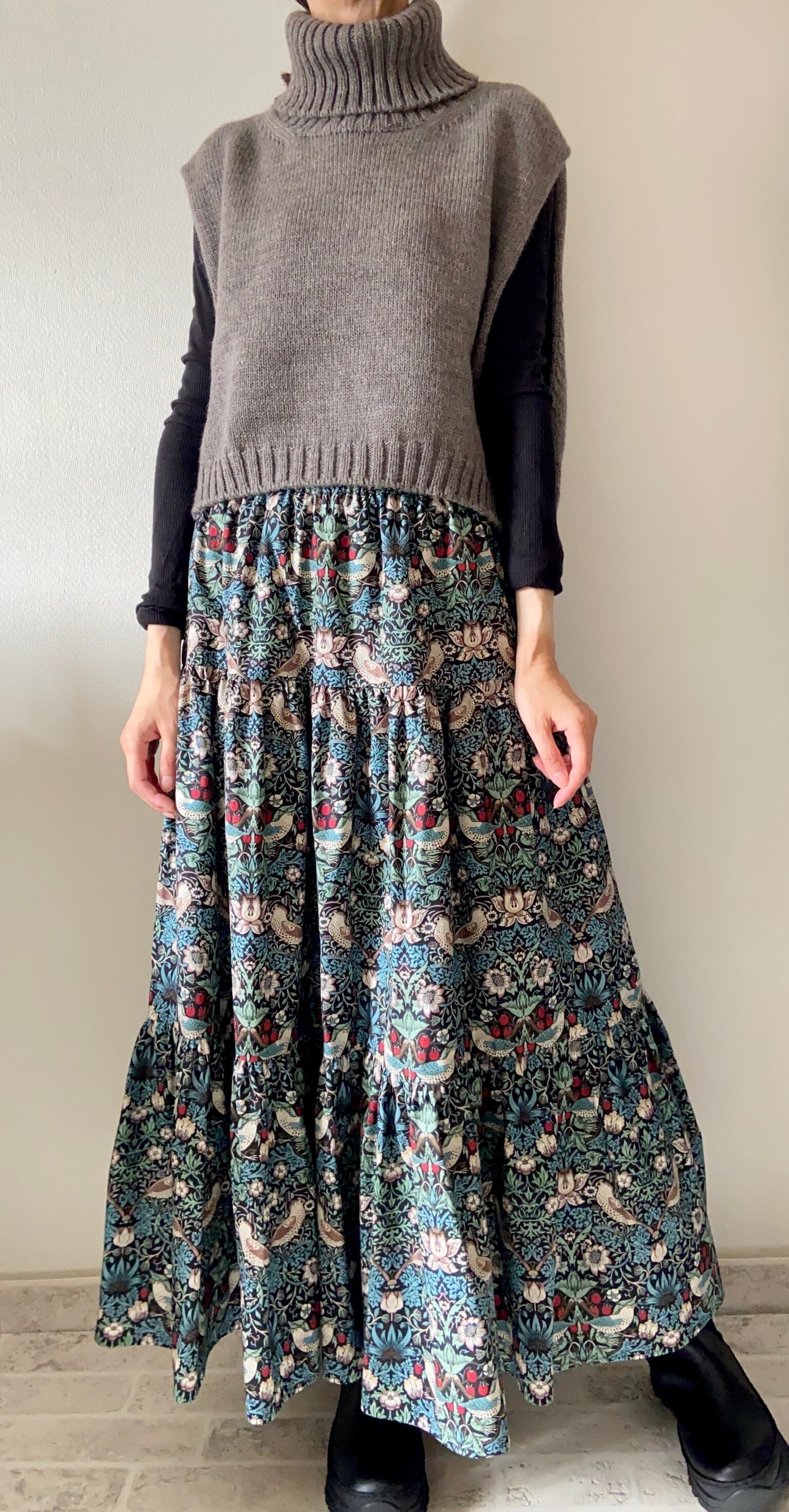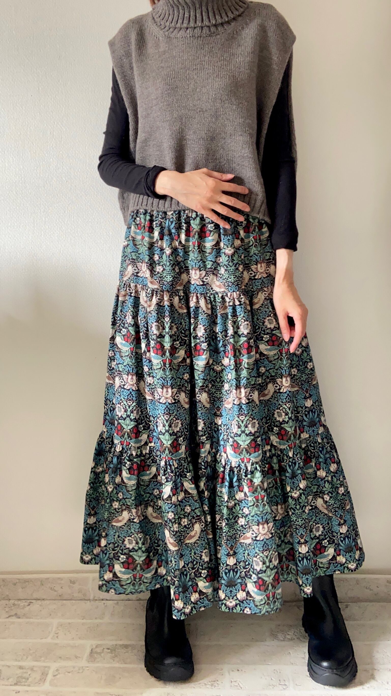 ウィリアムモリス 3ティアードスカート ブルーグリーン レギュラーサイズ