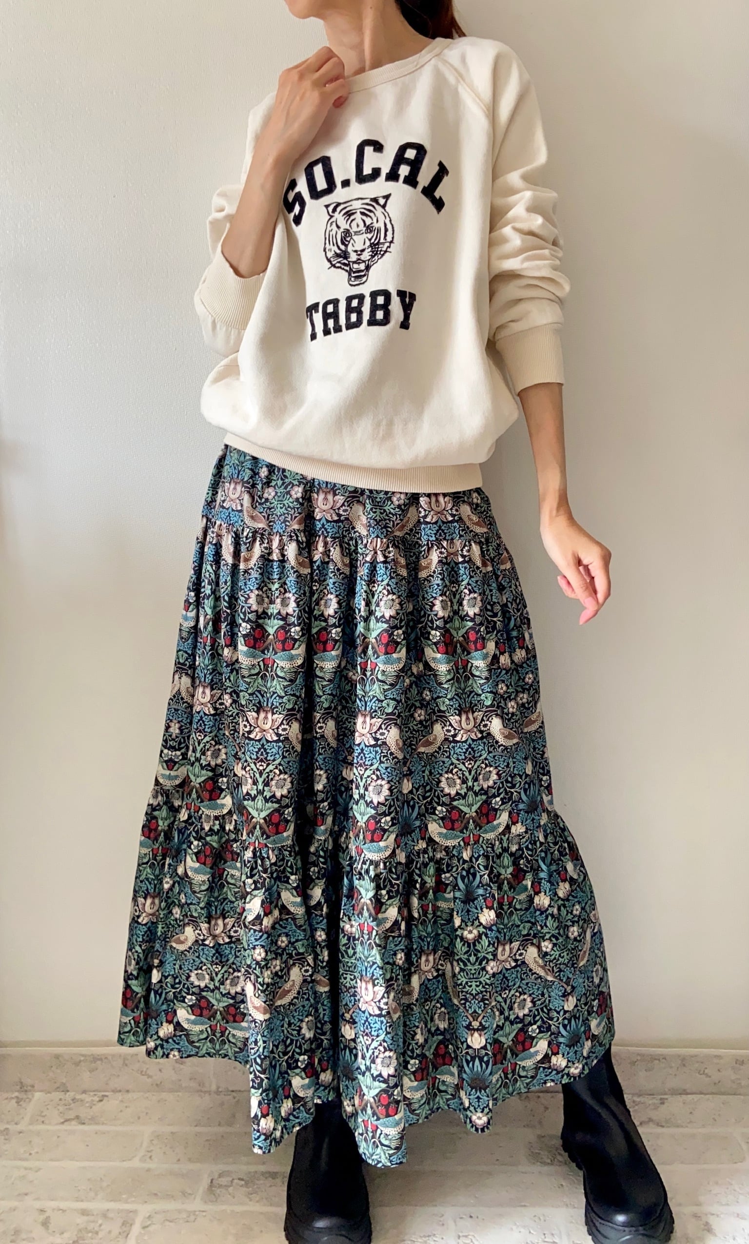 初回人気で即完だったため、ウィリアムモリスのストロベリーシーフ柄を使用した3ティアードスカートのレギュラーサイズのみ追加販売です☆