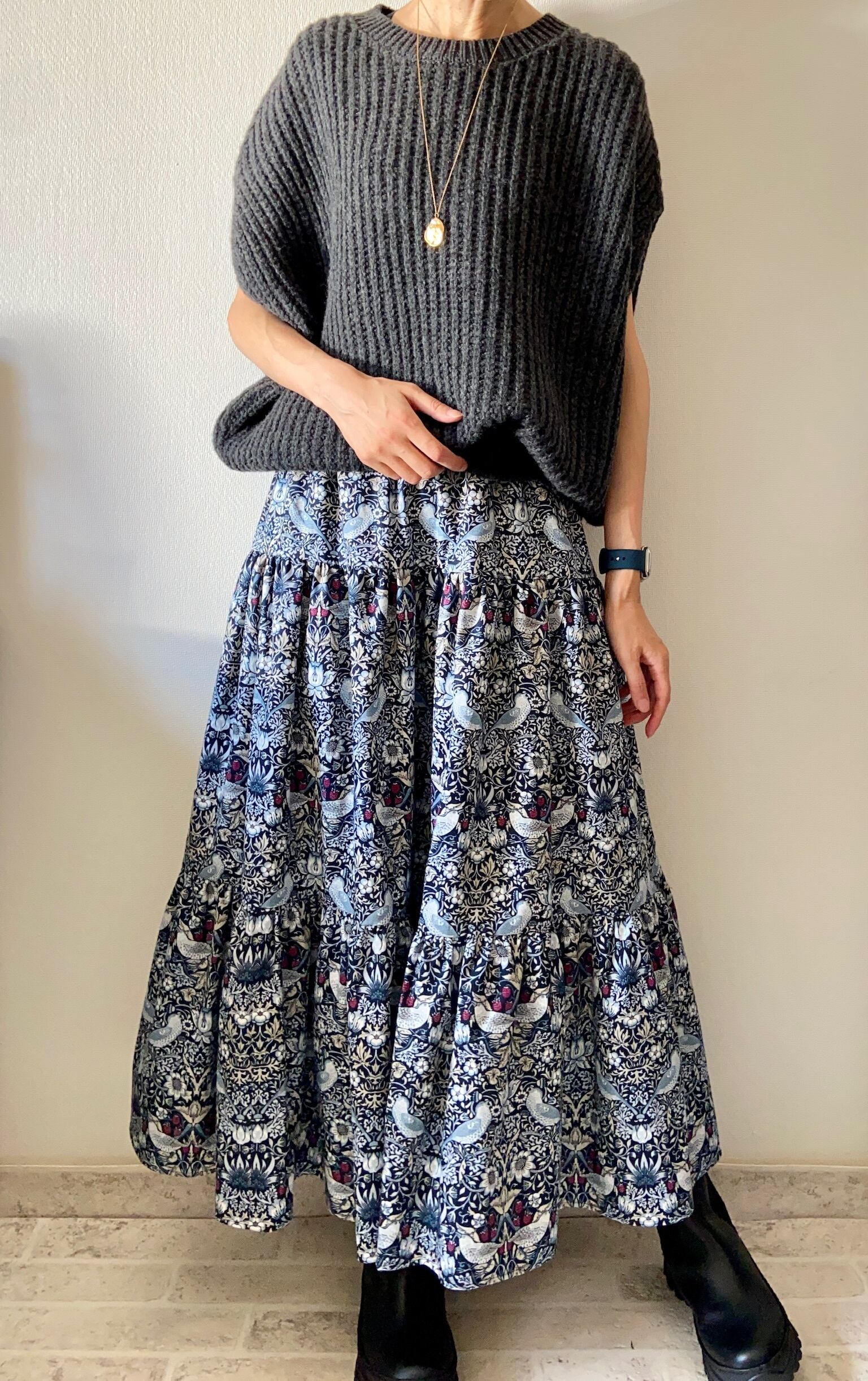 販売リクエストにお応えし、ウィリアムモリスのストロベリーシーフ柄を使用した3ティアードスカートのグラマーサイズを製作しました☆