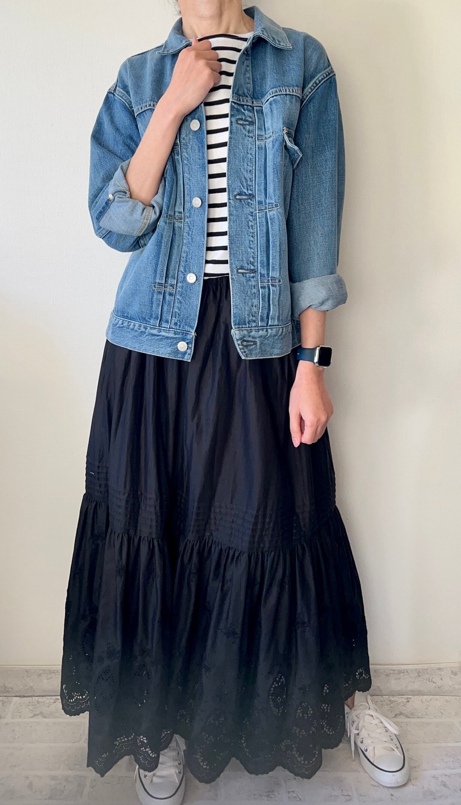 こちらのカラーはブラック、丈は158cm以上の方を対象としたスカートになります。