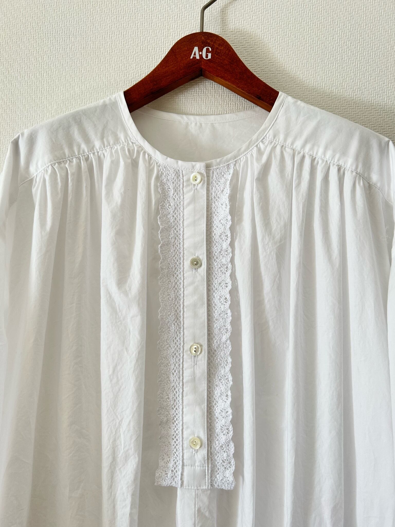 (お写真にはございませんが裾も袖口同様3段のレースがつきます)