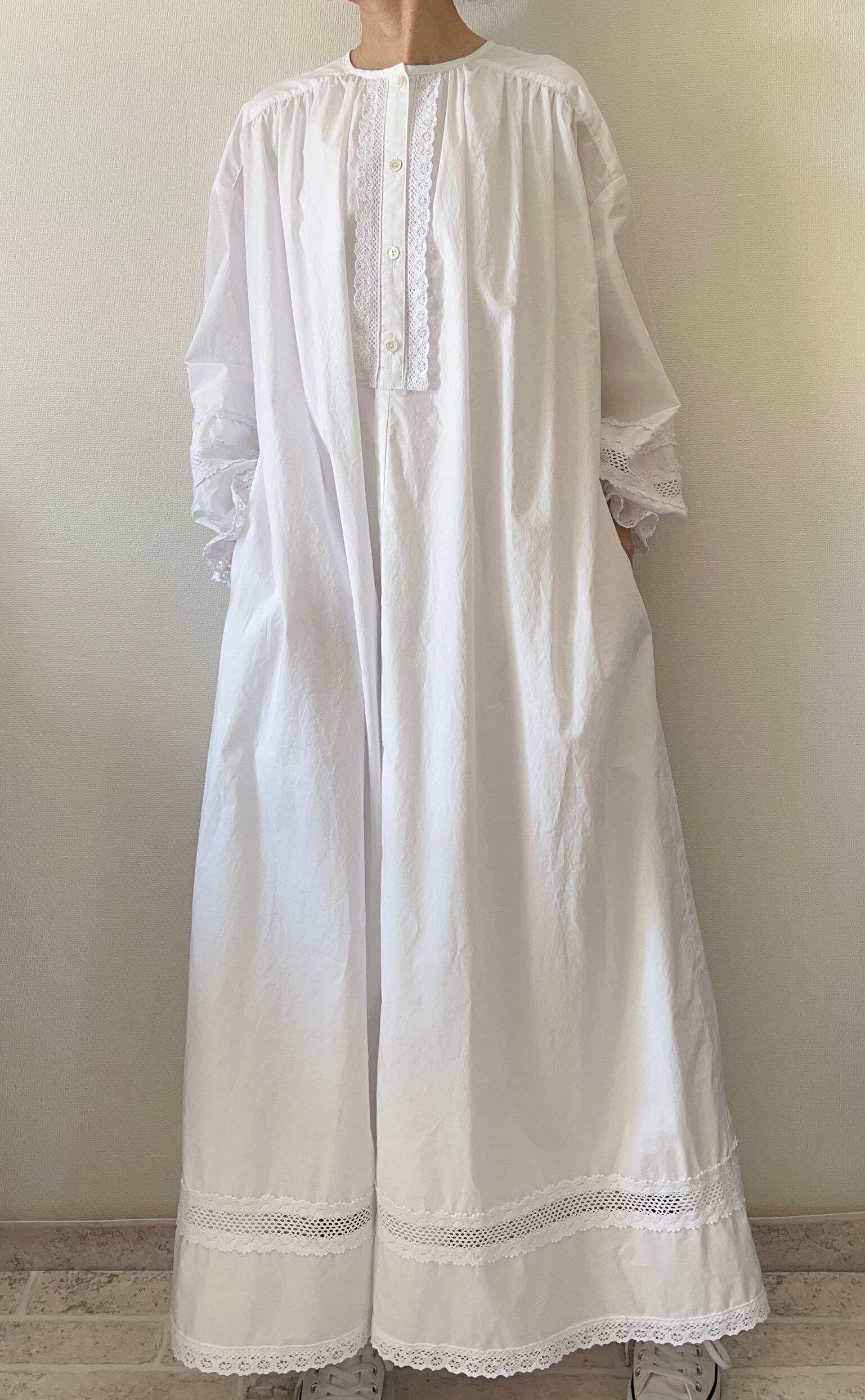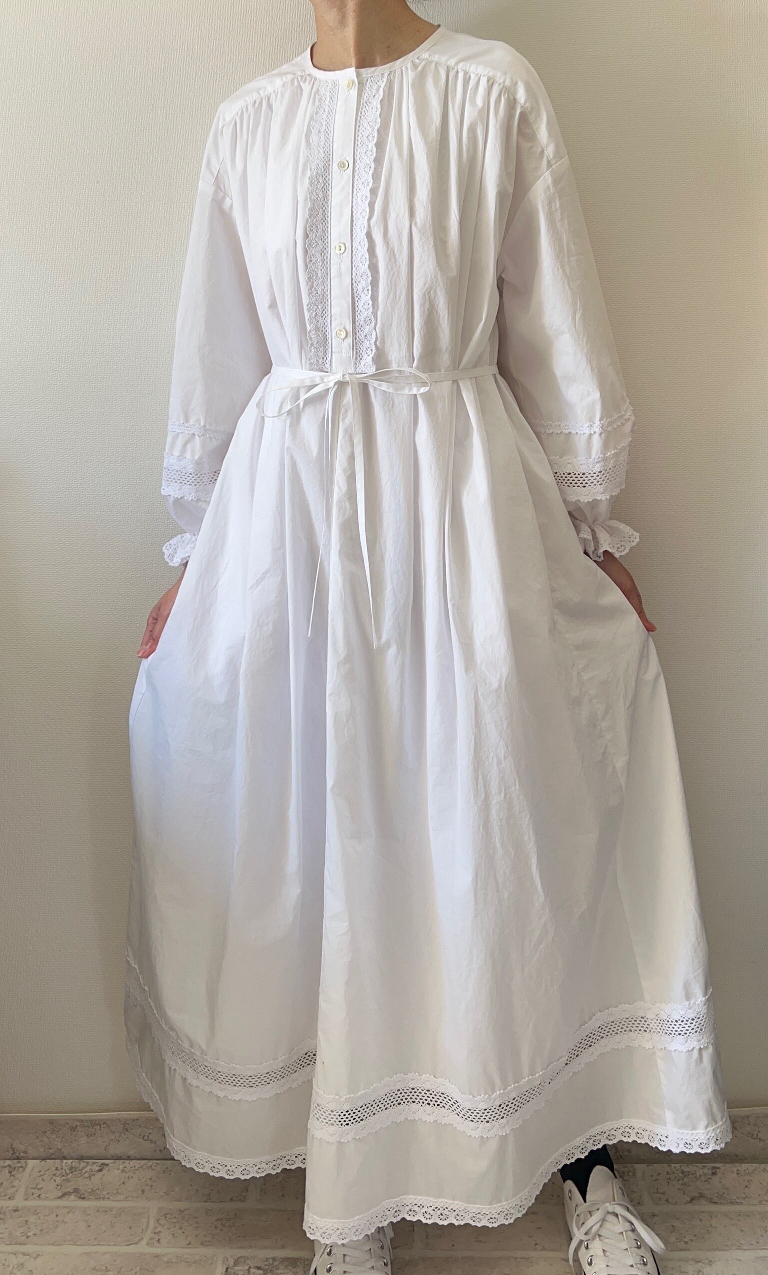 こちらは3種類のコットンレースをふんだんにあしらったワンピースになります。