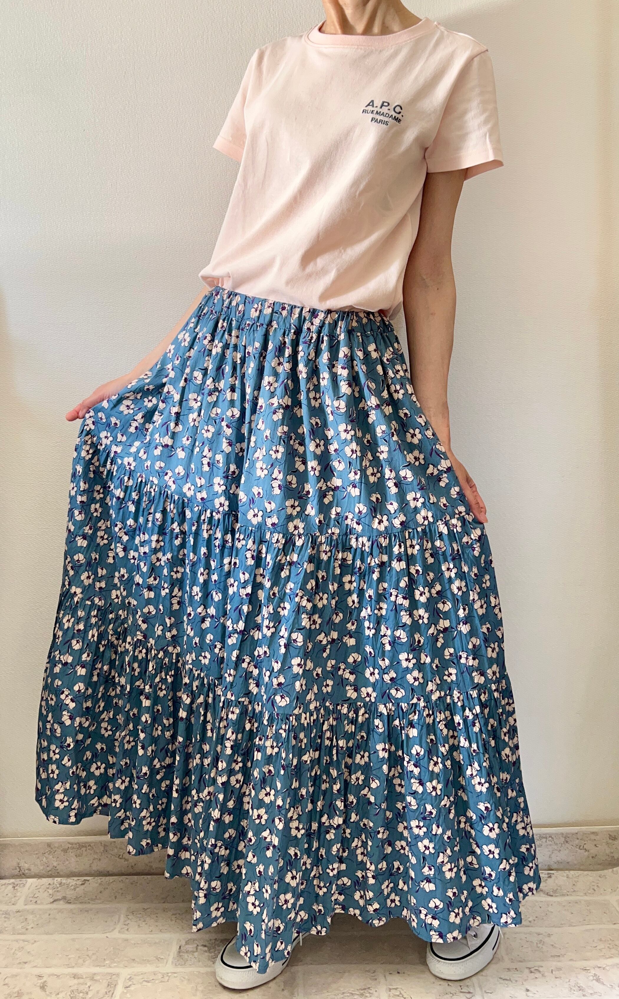 ゆったり穿けて歩くとヒラヒラ、が自慢のティアードスカートです。