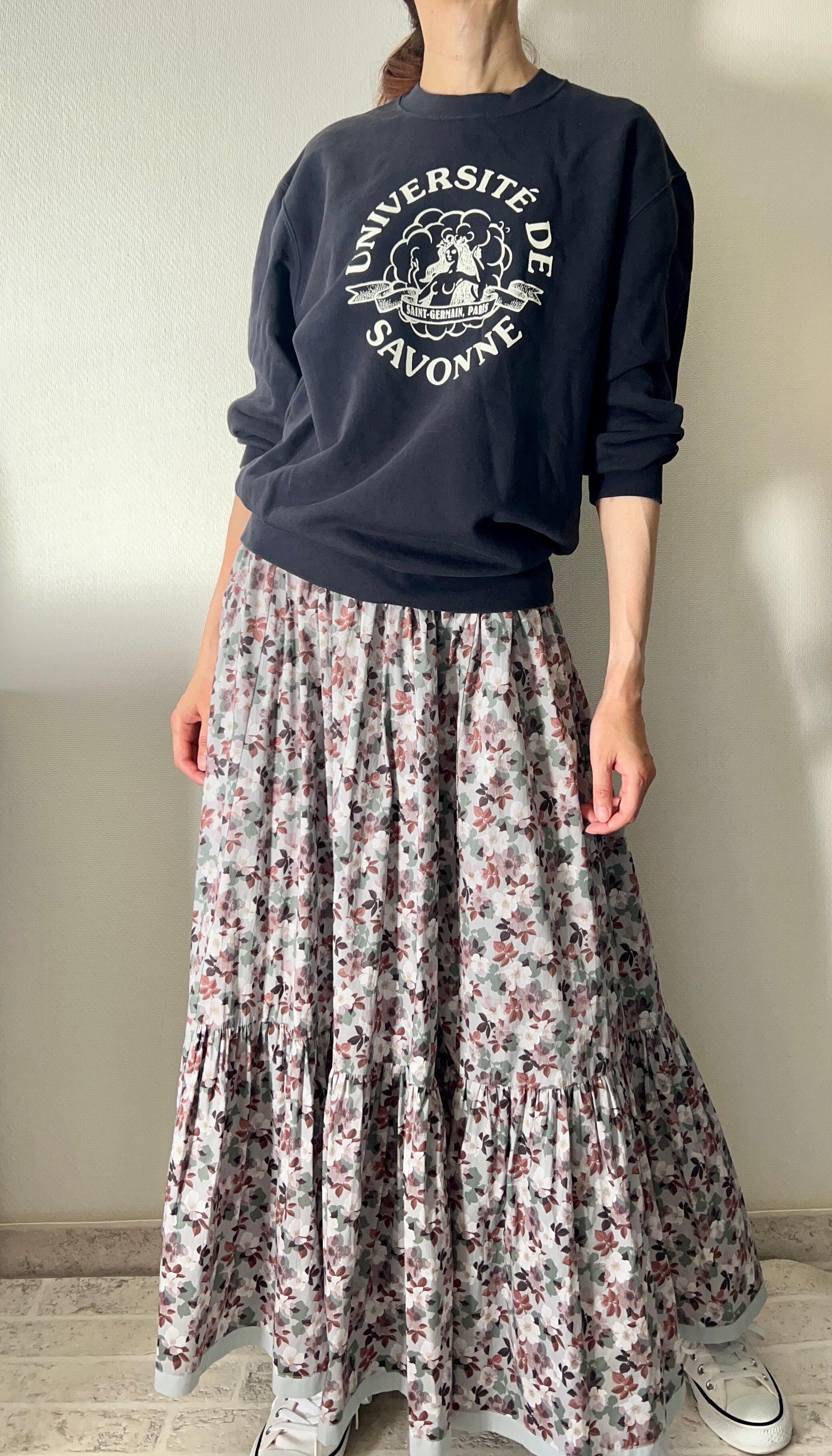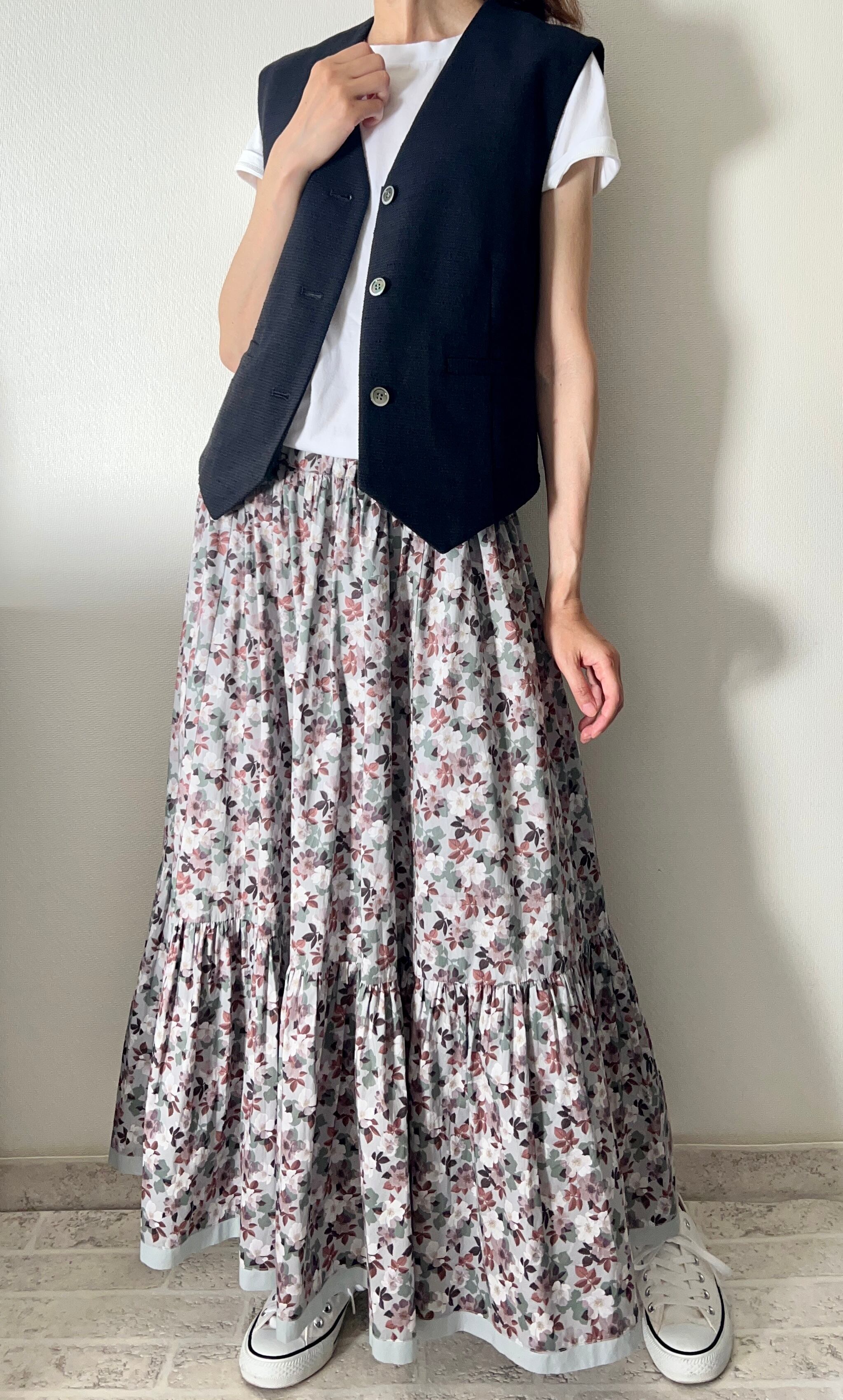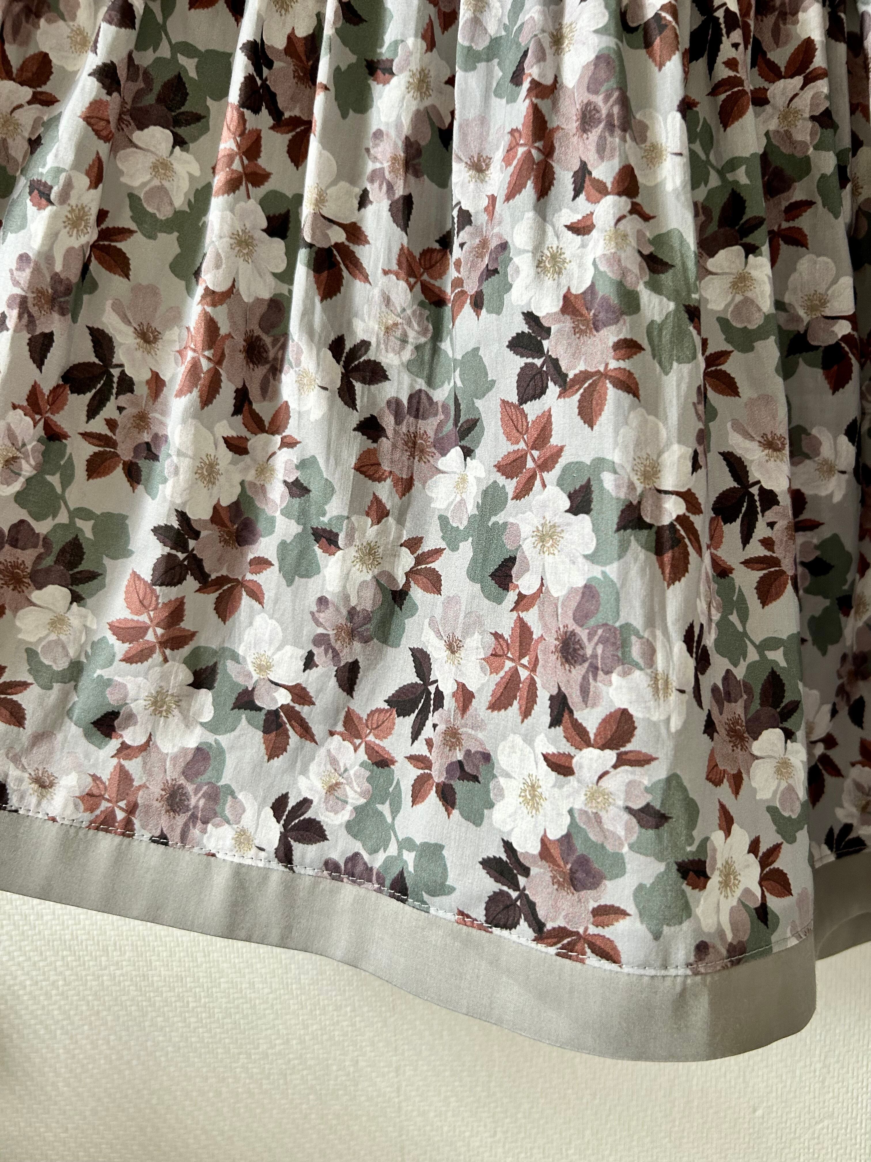 ベースがグレーなので白い花柄でも子供っぽくなることなく大人かわいく着て頂くことが可能◎
