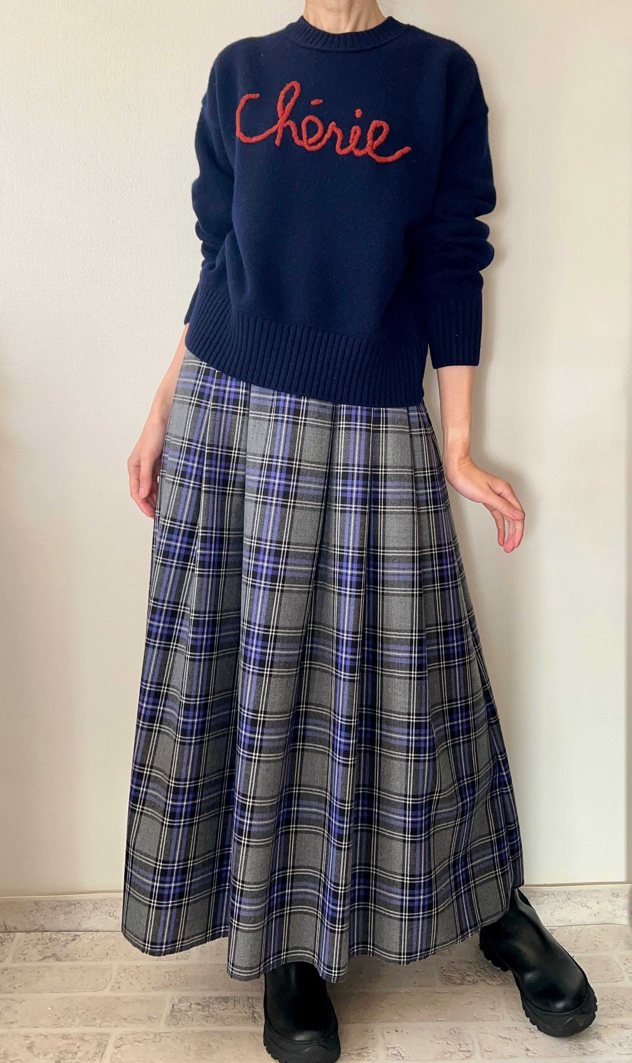 楽にスッと穿けてチェックなのに子供っぽくならない仕上がりです☆