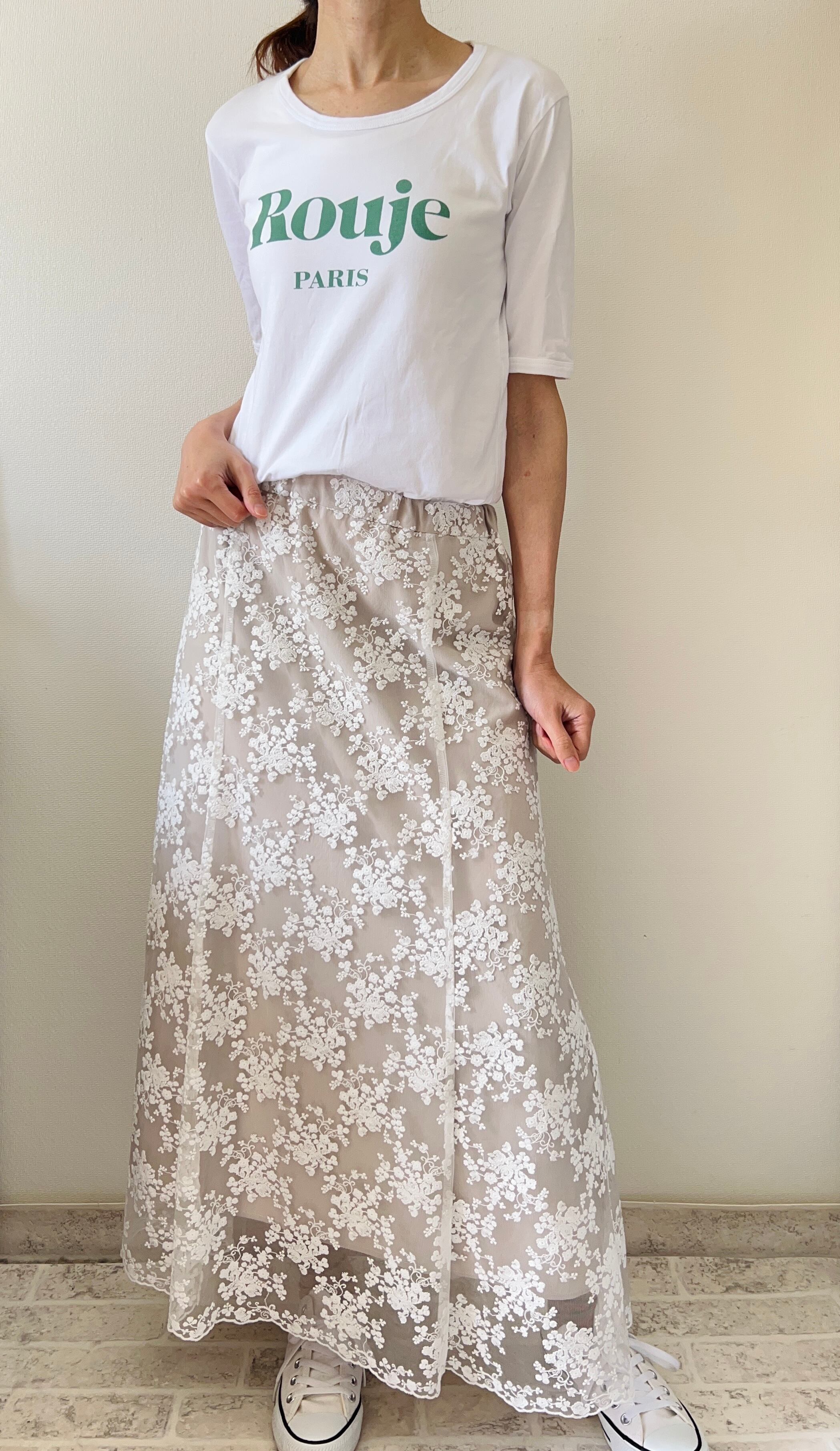 ナイロン地の柔らかなチュールに綿の刺繍が映えます。