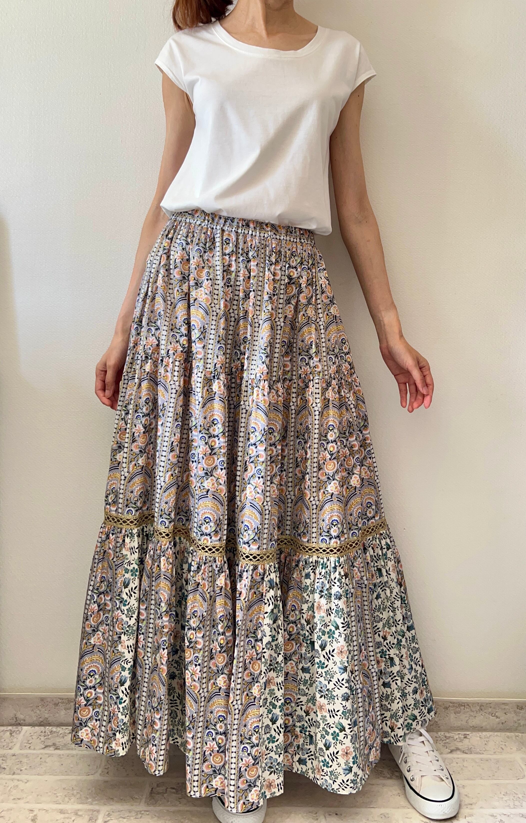 初めて輸入リバティを使い、アジアンな雰囲気もある3ティアードスカートを作りました!