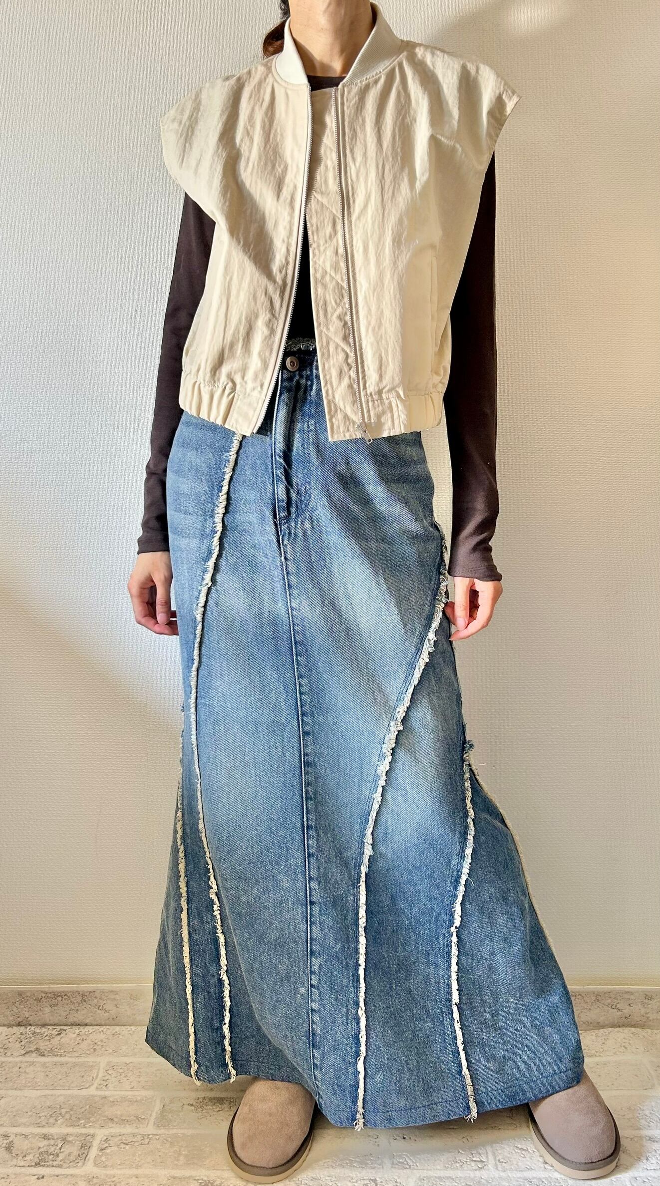 全体的にシワがあるのでデニムに合わせてカジュアルなコーディネートに最適です⭐︎